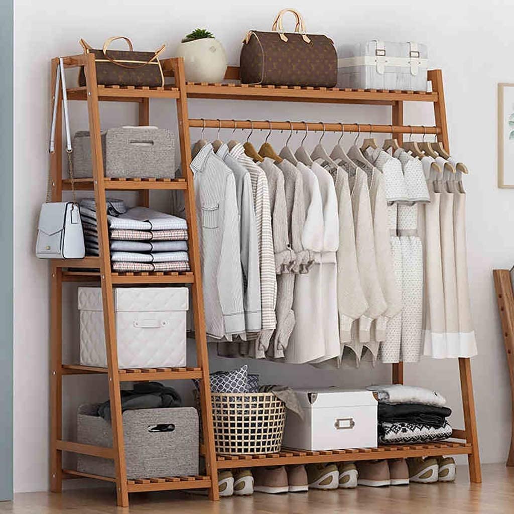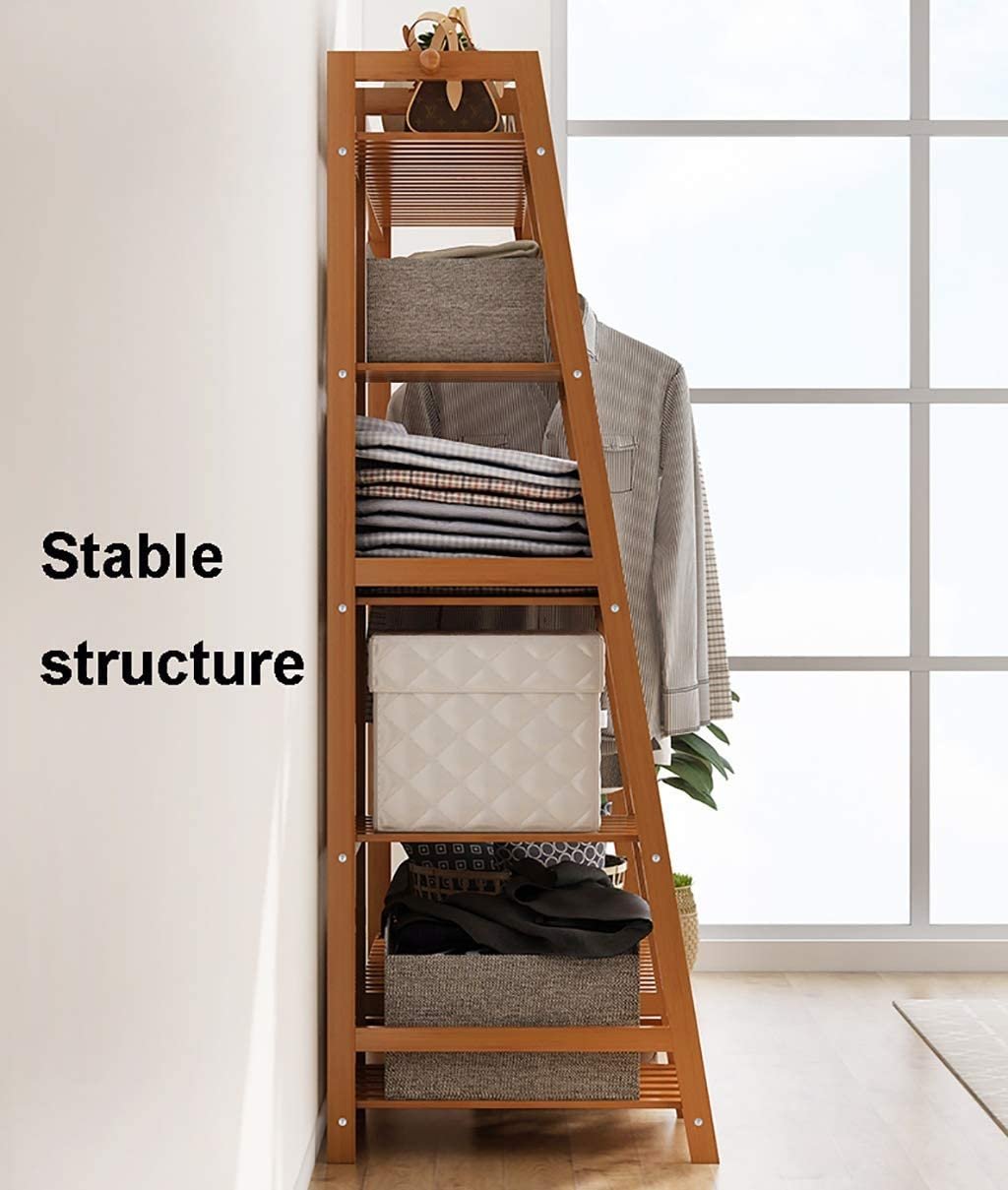 1 review for ADA Handicraft Premium Bamboo Clothes Rack Heavy Duty Garment Stand Coat Hanging Stand, 5 Tier Storage Shelves Closet Organizer for Bedroom, Living Room and Entryway – Multi Size