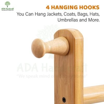 ADA Handicraft Premium Clothes Corner Rack Wooden Coat Hanger Stand with Side Hooks for Hanging Clothes & Bags Storage Organizer Wooden Furniture Clothing Stand for Bedroom & Hallway (33 x 24 x 163)CM