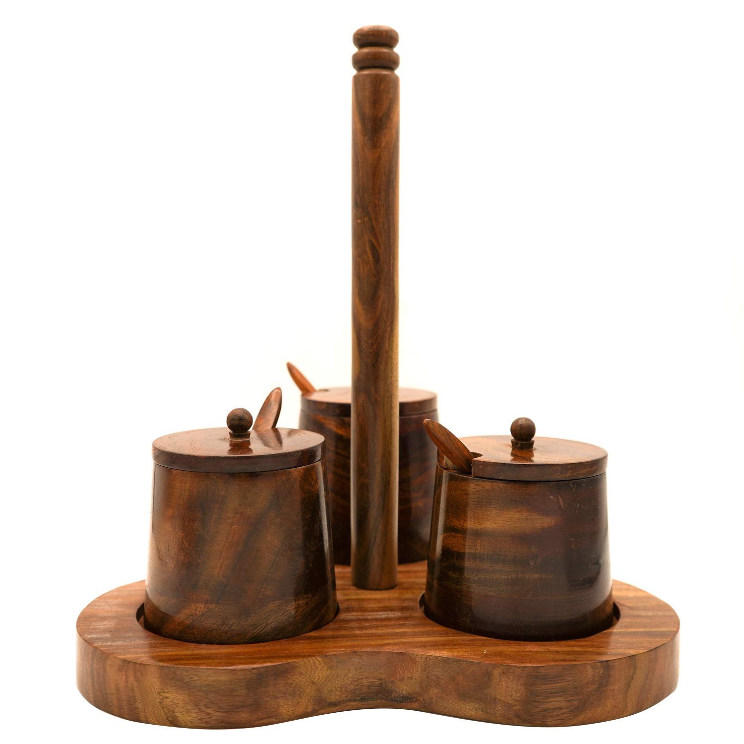 Sheesham Wooden Masala Jar With Stand