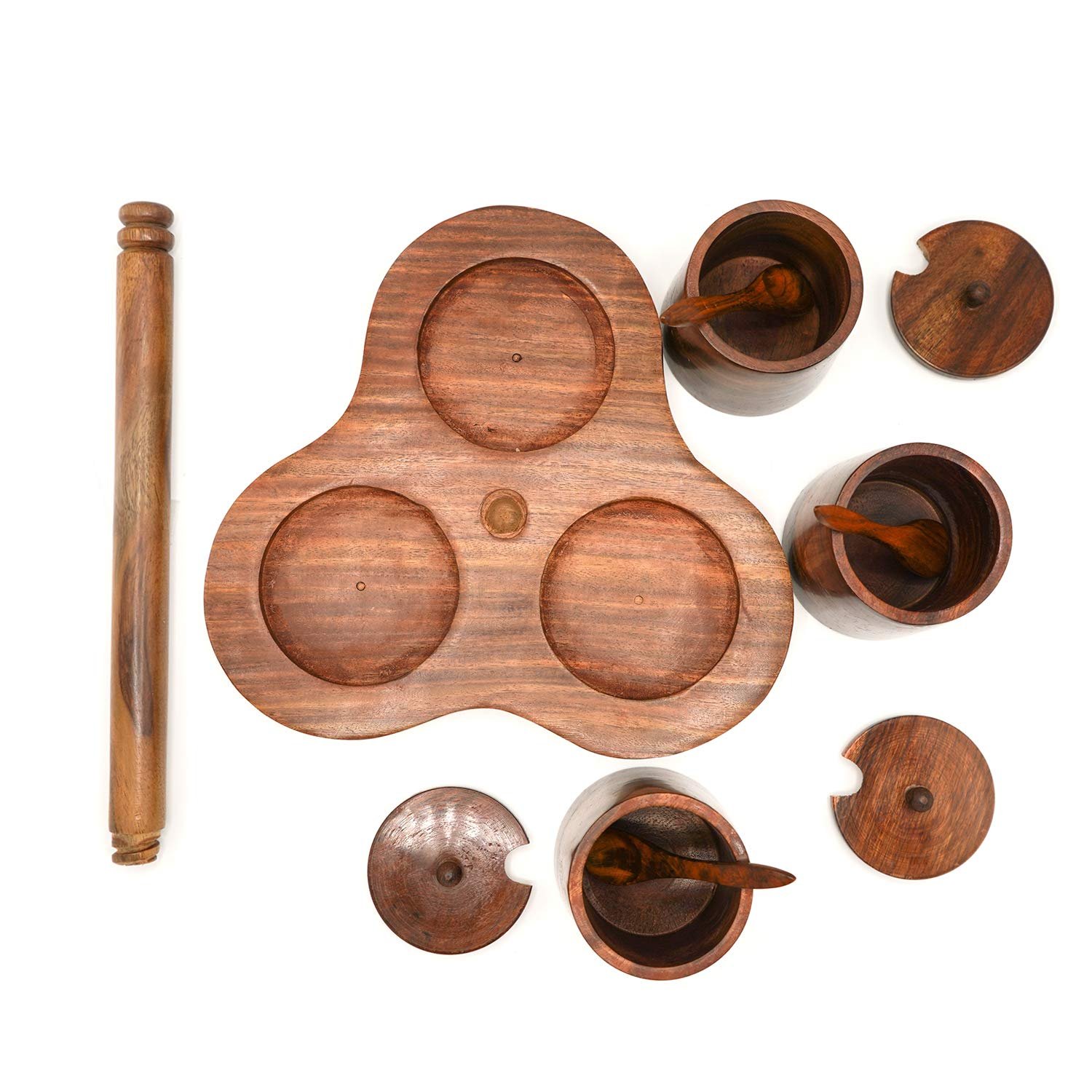 ADA Handicraft Wooden Container Set for Kitchen Storage with Spoons