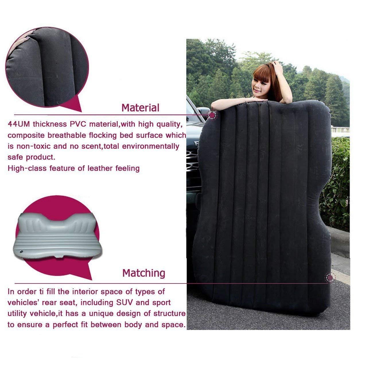 • The offered car suv air bed is made of high quality pvc, sleek black flocked material to it feels like soft feather durable and tear resistant fabric to transforms your car back seat into a comfortable and luxurious bed.