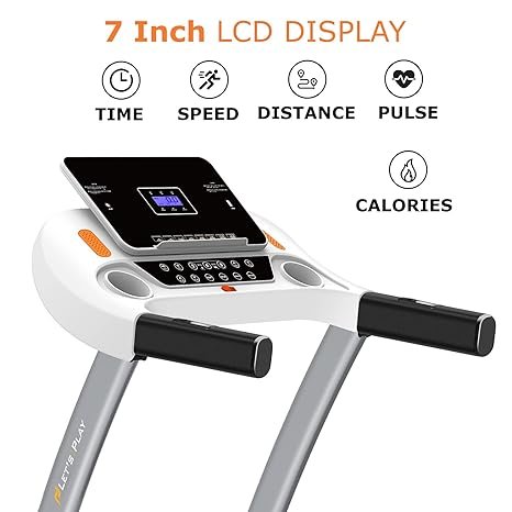 • 【LARGE LCD DISPLAY】: Our Treadmill has 7 inch large LCD display which enables you to monitor time, distance, speed and calories burned in each workout session. It also features built-in pulse sensor grips on the handrail bar to monitor your heart beat rate which is displayed on the LCD display. Also it has water bottle and phone holder at front. It comes with a hassle-free electric motorized plug in design which makes it easy to use and provides optimal performance without any complication.