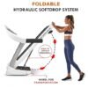 • 【PORTABLE, SPACE- SAVING DESIGN WITH EXTREMELY EASY INSTALLATION】: Stylish contemporary space saving folding design with reliable, sturdy frame for easy storage. This mid-size portable (2 wheels) treadmill with hydraulic soft-drop system can be easily unfolded just by a light kick. When folded, it has a compact dimension of 169 CM × 76 CM × 32.5 CM. It’s 90% pre-installed (Only 3 pairs to be screwed) and post-delivery free video call installation assistance is provided if needed.