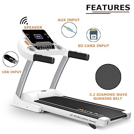 Letsplay LP-333AC is a premium Folding Portable Smart home use Treadmill. Its folding design makes it easy to store and transport with two front wheels. It can be used at home, office or anywhere as it is portable and very lightweight. 3 HP Japanese AC motor with maximum power capacity at 6 HP provides powerful and smooth yet quiet operation.
