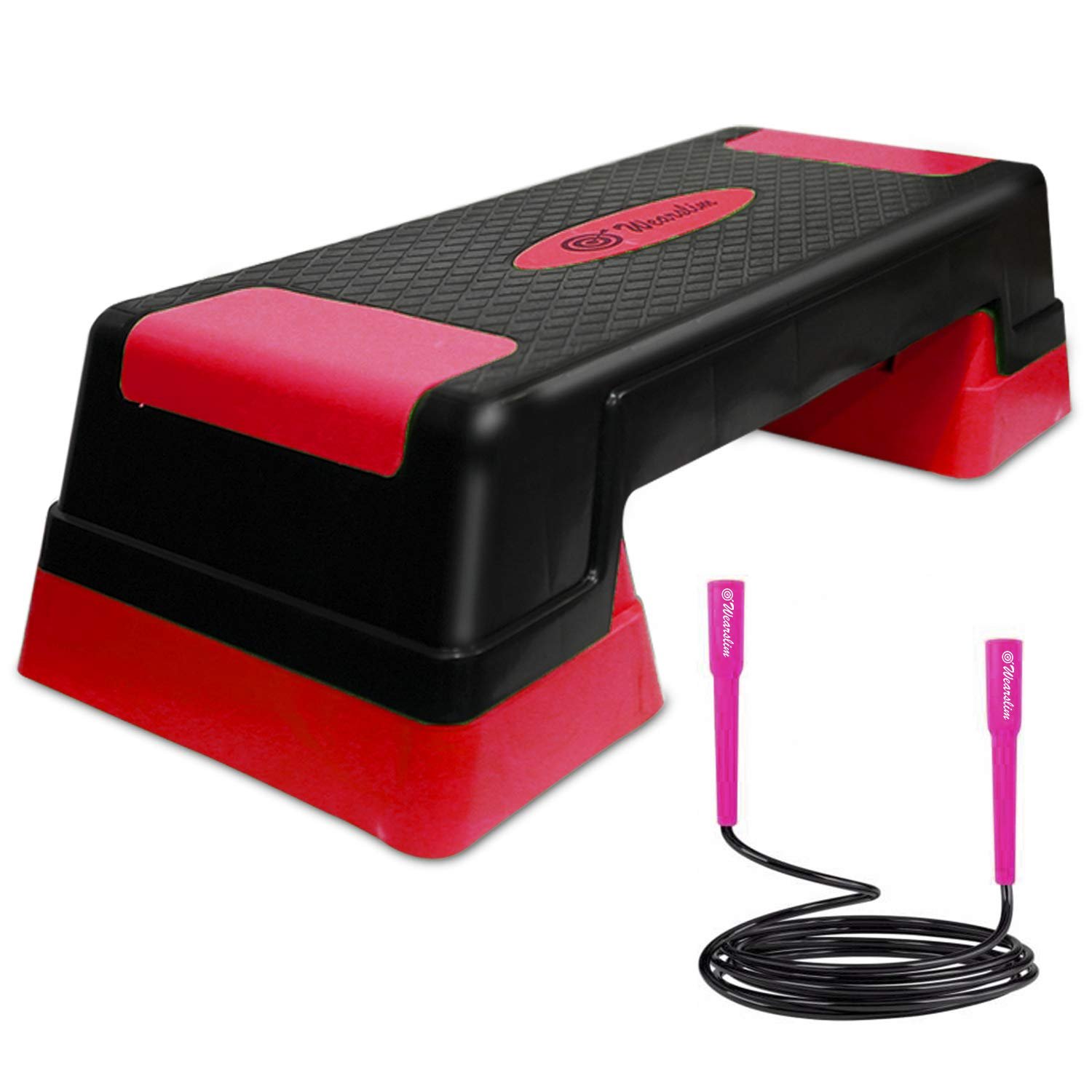 - 1 x Wearslim Aerobic Exercise Step Deck, Adjustable Workout Fitness Stepper Exercise Platform with Risers For Sports & Fitness & Screw-Free Design High-Speed PVC Skipping Rope (Assorted)
