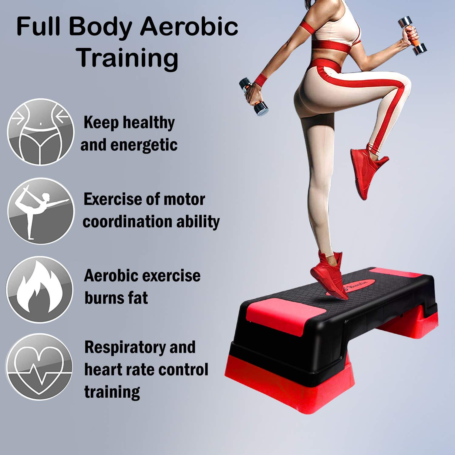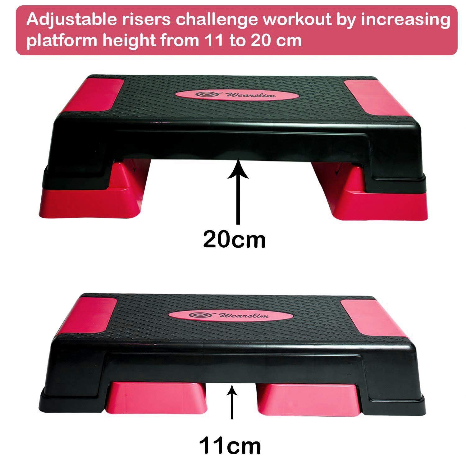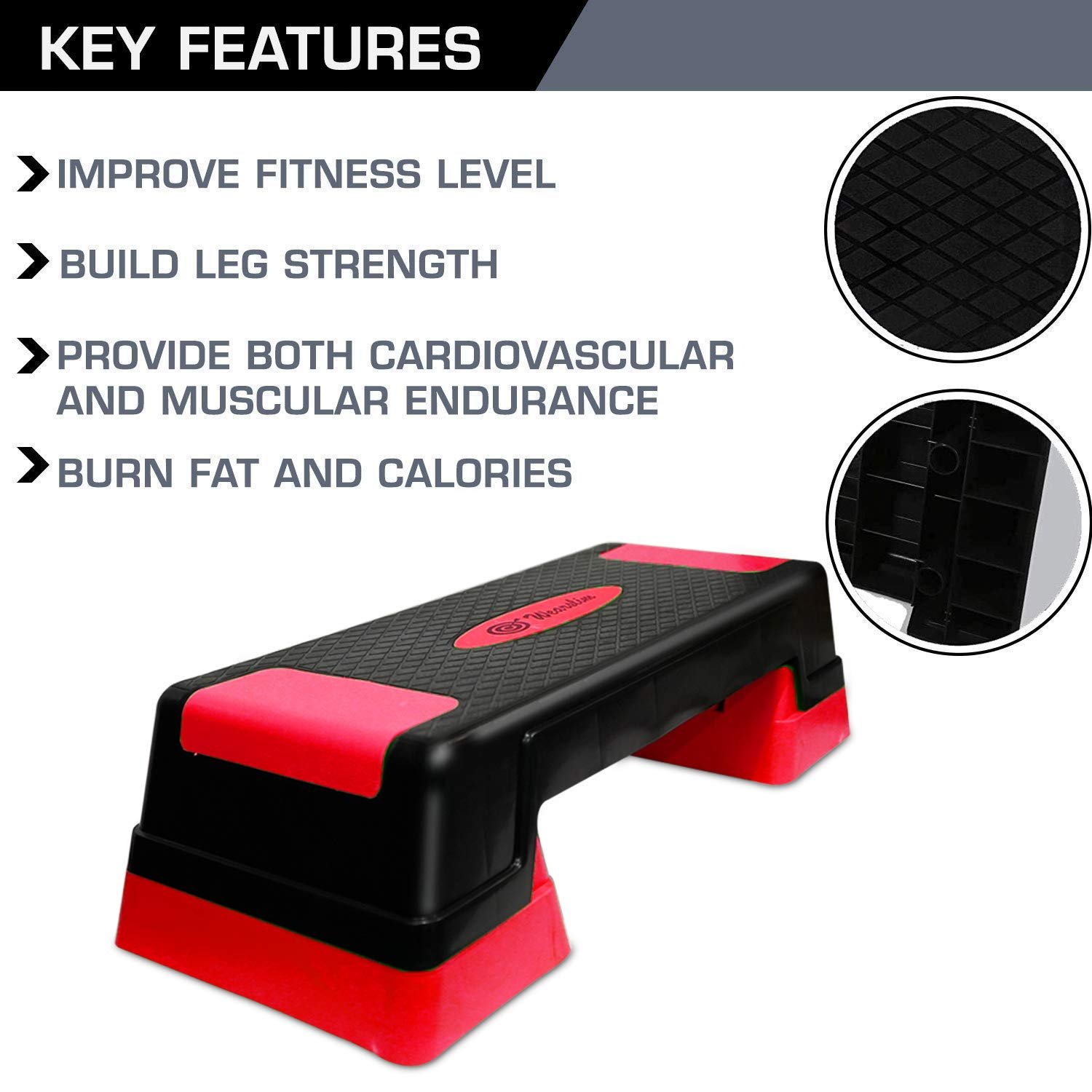 The grooved, non-sticky surface of the stepper adds perfect gripping and absorbs the shock, which prevents you from sliding or slipping and allows you to focus on your positioning, so you can feel safe as you move from the floor to the step. Raise your workout intensity by adjusting platform height by using risers, which suits individual preference.