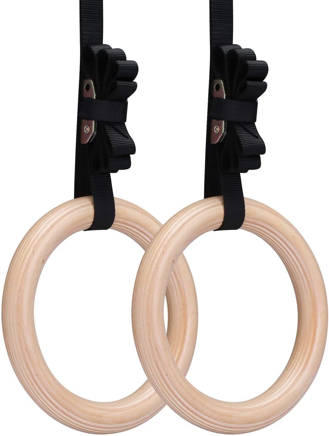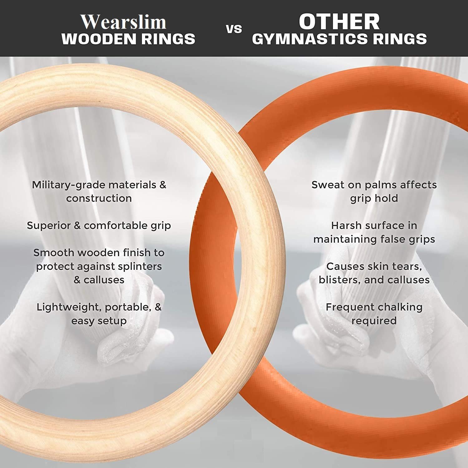 Wearslim Fitness Gymnastics Rings, Roman Ring 100-120 kg Capacity with 14.5ft Adjustable Buckle Straps for Cross Fitness Functional Training for Home Gym Full Body Workout - Wooden photo review