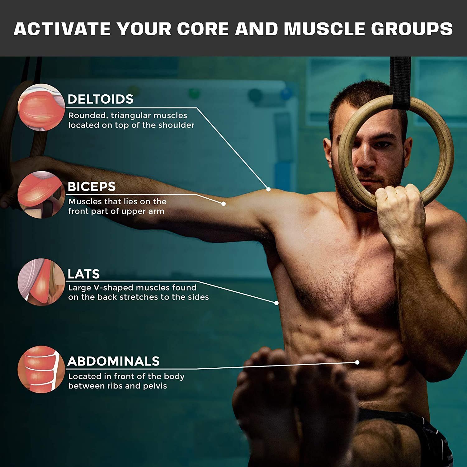 • DURABLE WITH ABS CONSTRUCTION:- The rings are made of high-density Birchwood for ultimate durability and security (load capacity up to 100 -120 Kg.), the threaded rings ensure outstanding comfort while making sure there is zero slippage even when sweating.